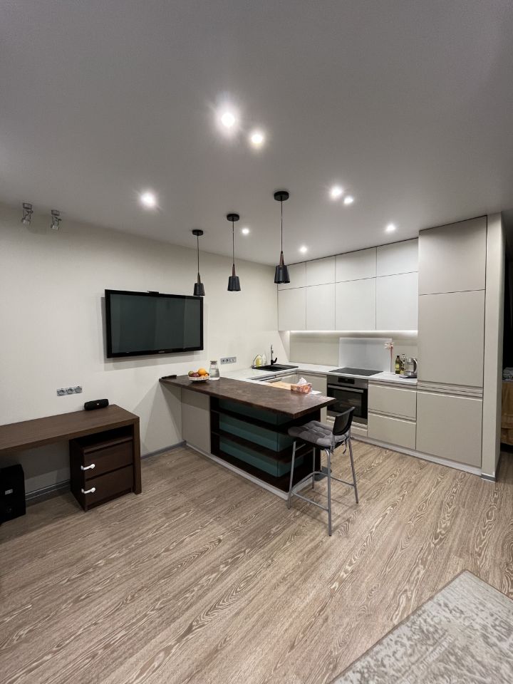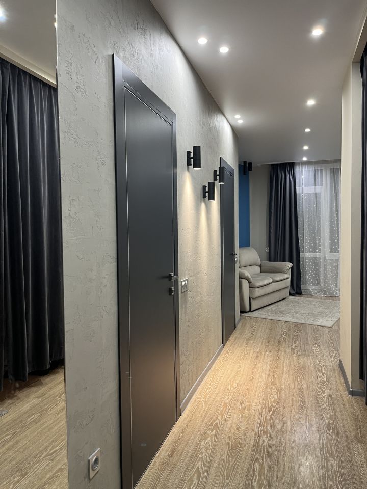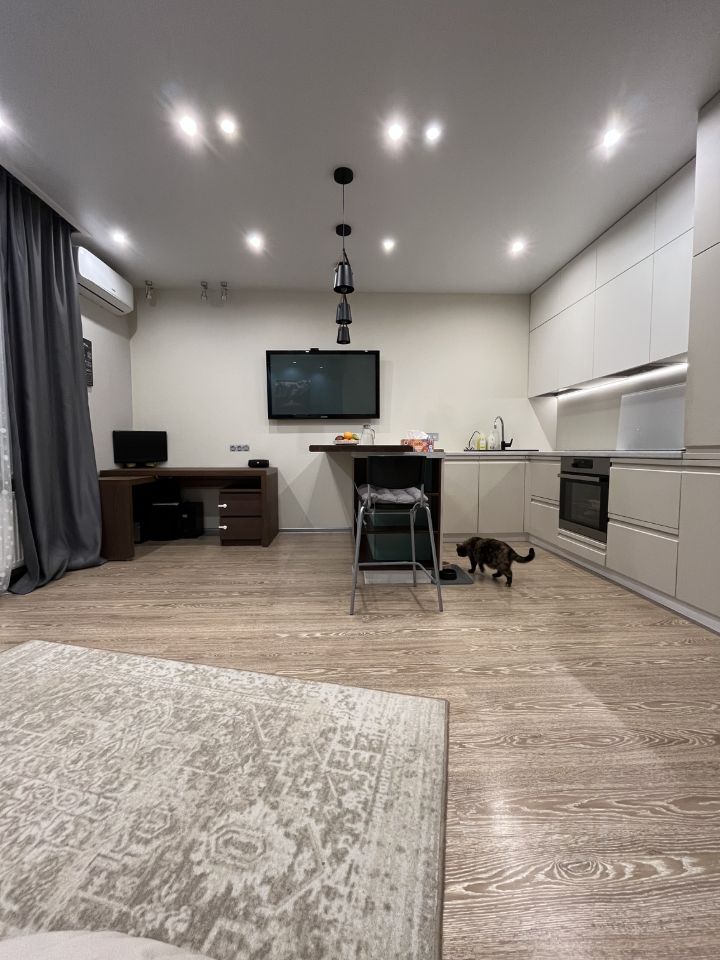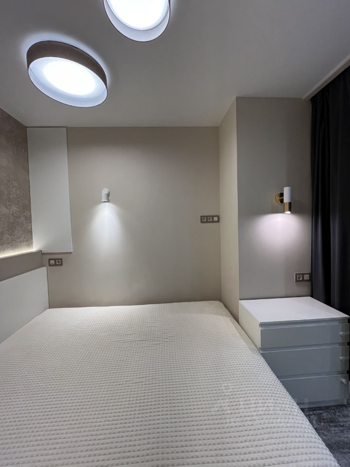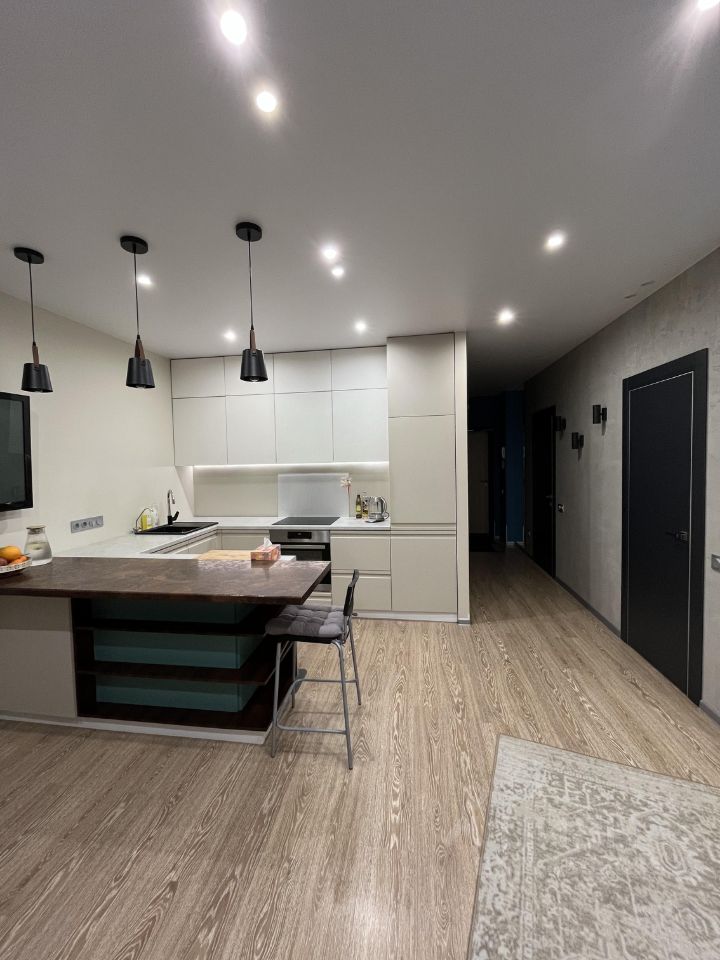 Квартира: - Небольшая уютная спальня, отделка декоративной штукатуркой, разные сценарии освещения, светодиодная, регулируемая по яркости подсветка - Просторная кухня-гостиная с вместительным гарнитуром (фурнитура blum), встроенные холодильник, вытяжка, фильтр обратный осмос, посудомойка и кондиционер остаются, множество сценариев подсветки, продуманная электроразводка - Межкомнатные двери ProfilDors - Регулируемый объем подачи теплоэнергии - Гардеробная комната с системой хранения икеа - Просторный санузел с ремонтом от застройщика, установлены все приборы учета - Большая лоджия с шикарным видом на озеро