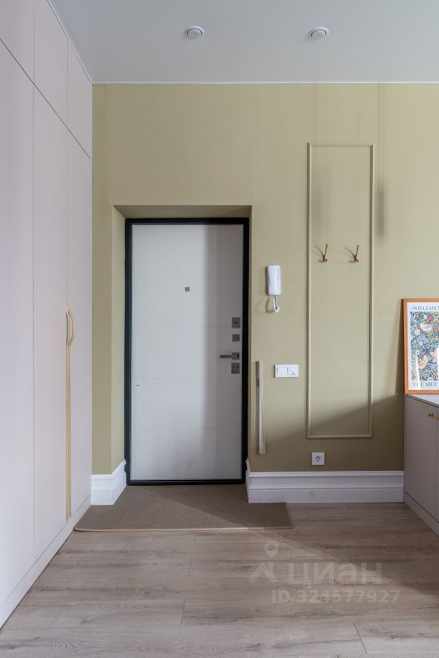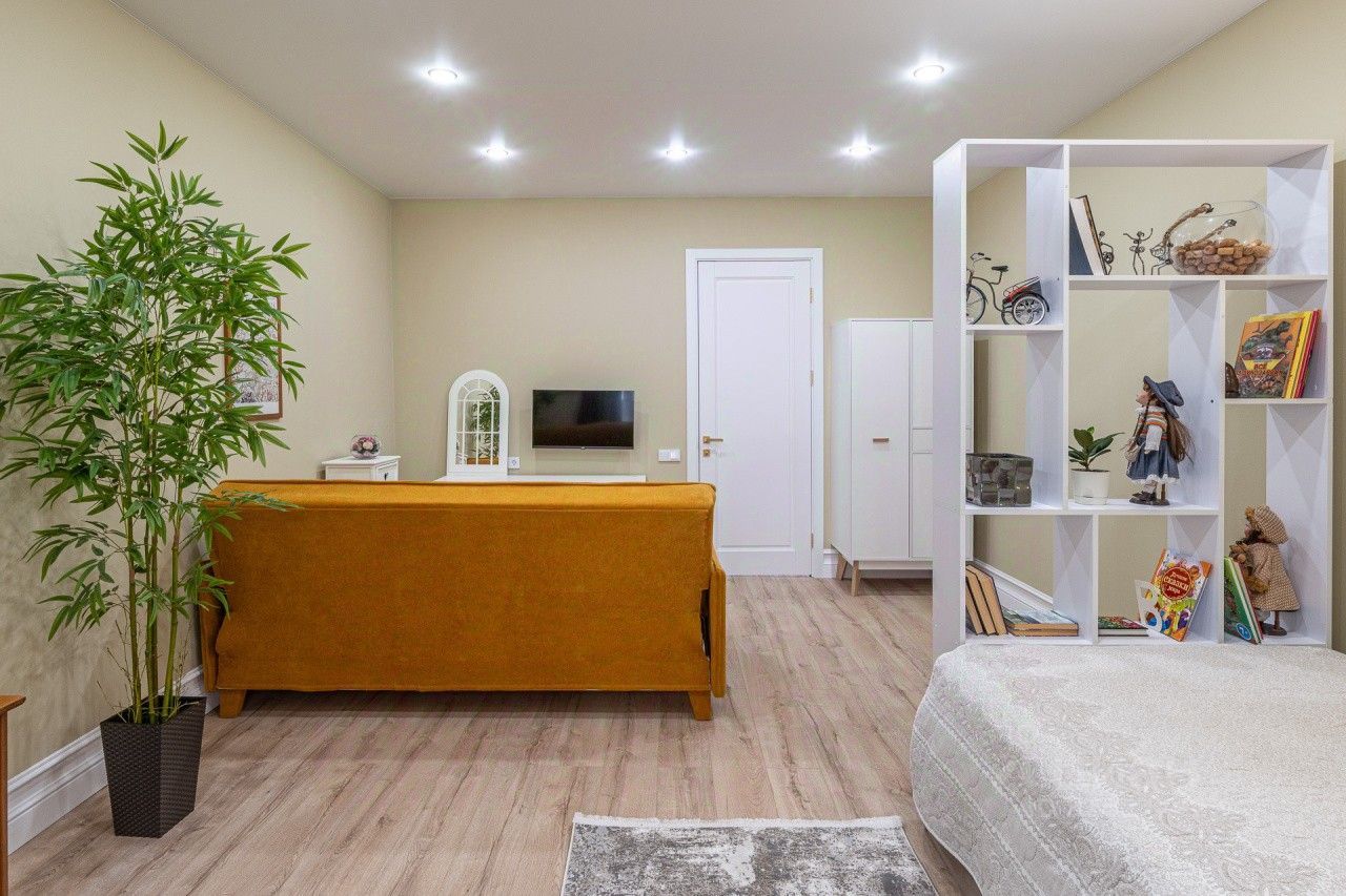 В квартире встроены полноразмерные шкафы для хранения. Диван в гостиной от известного мебельного бренда. Новый smart-TV диагональю 65''
