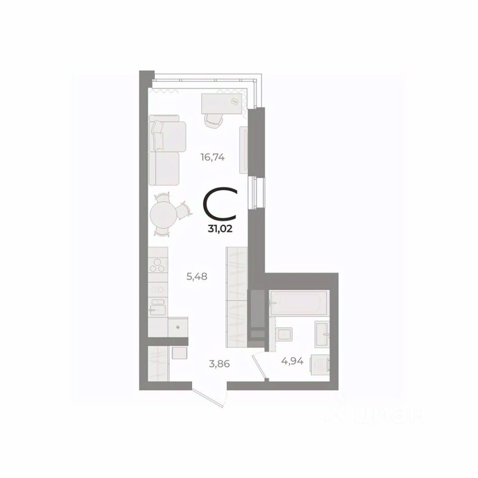 Общая площадь34,75 м2