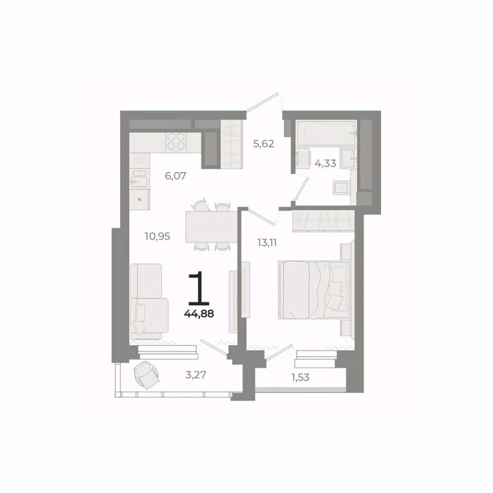 Общая площадь44,88 м2