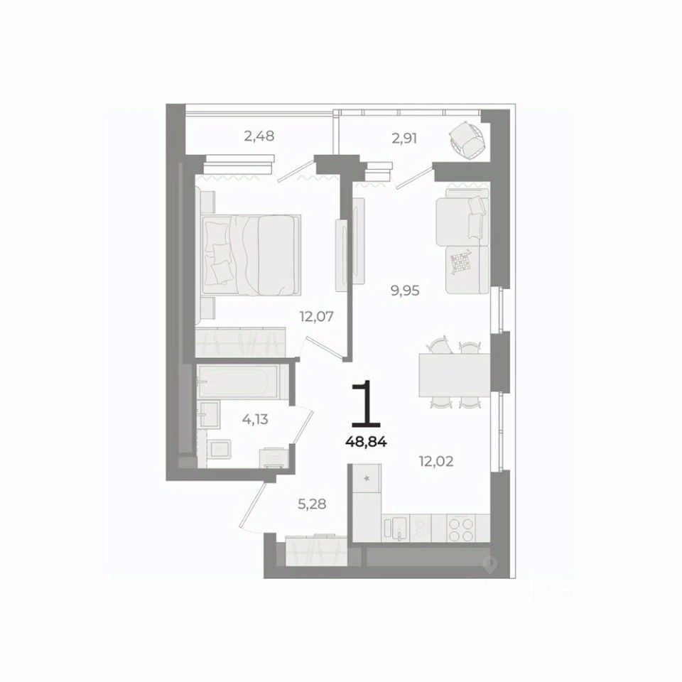 Общая площадь48,84 м2