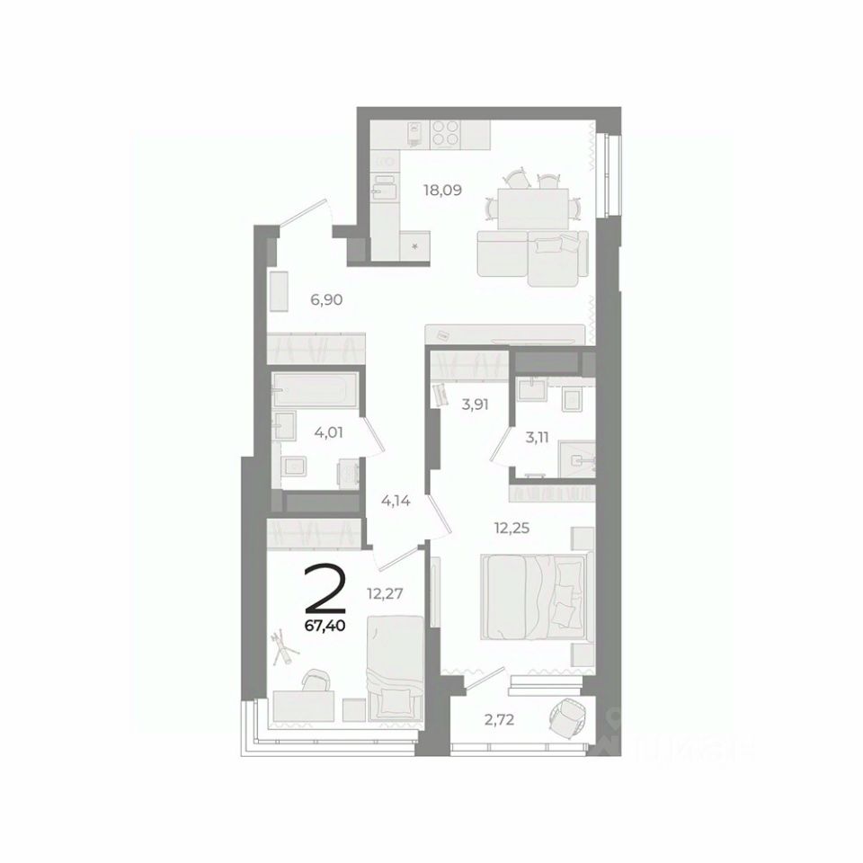 Общая площадь67,4 м2