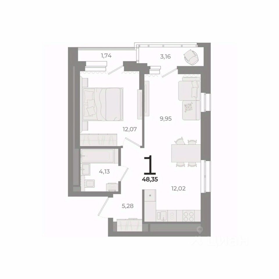 Общая площадь48,35 м2