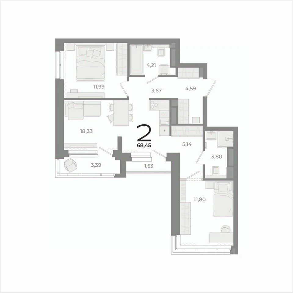 Общая площадь68,45 м2