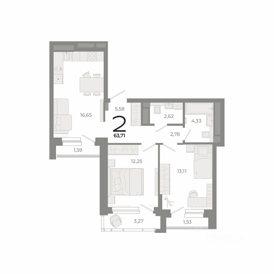 Общая площадь63,71 м2