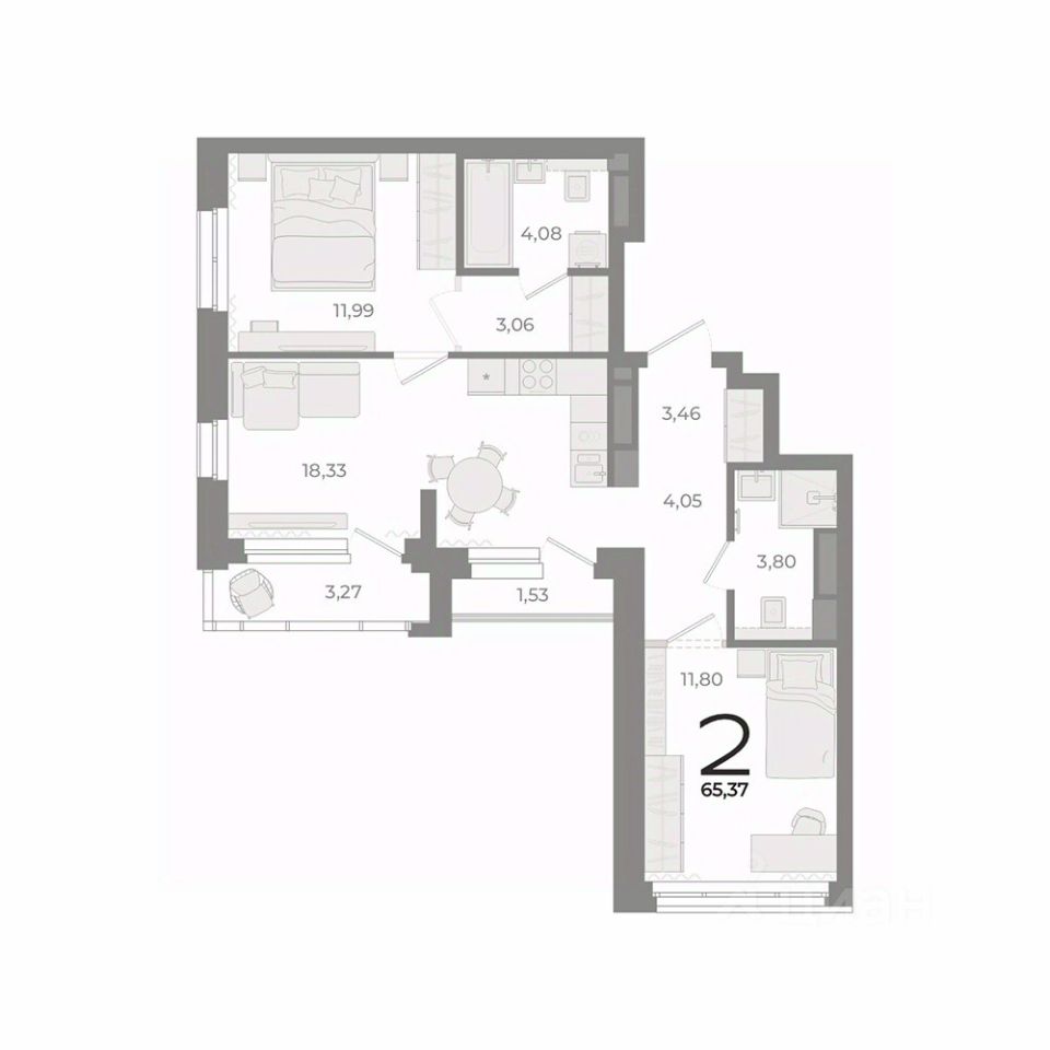 Общая площадь65,37 м2