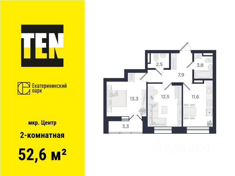Общая площадь52,6 м2