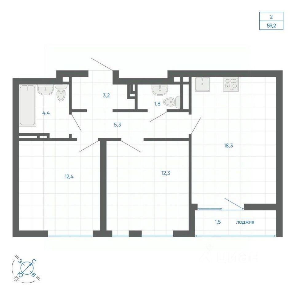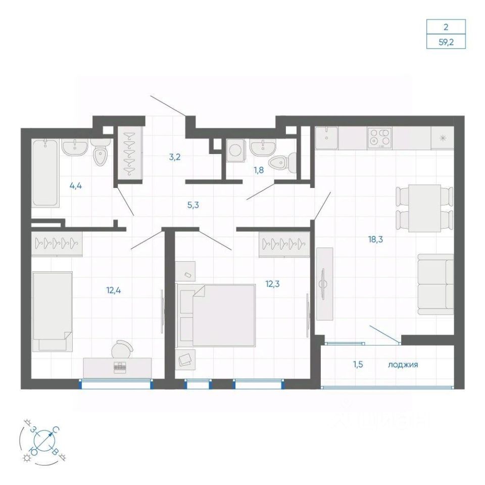 Общая площадь59,2 м2