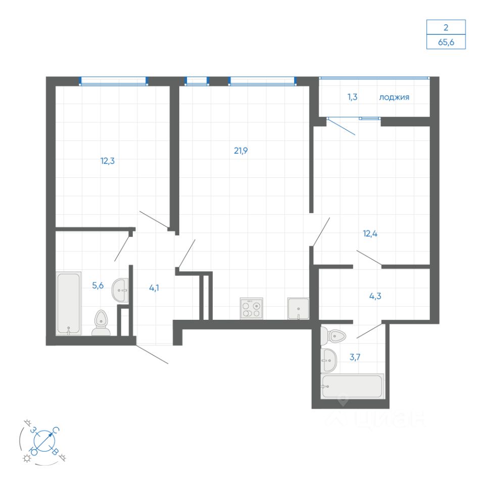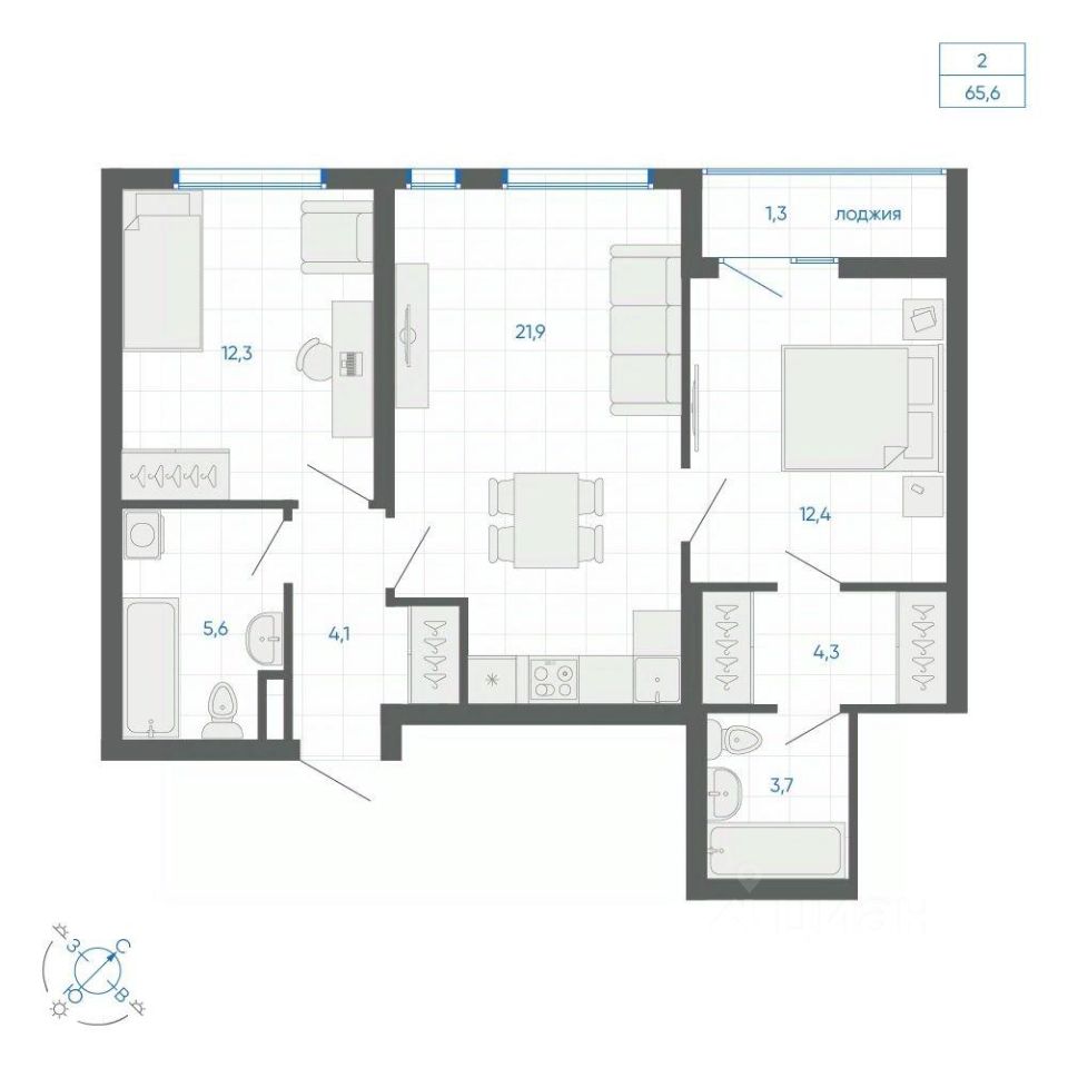 Общая площадь65,6 м2