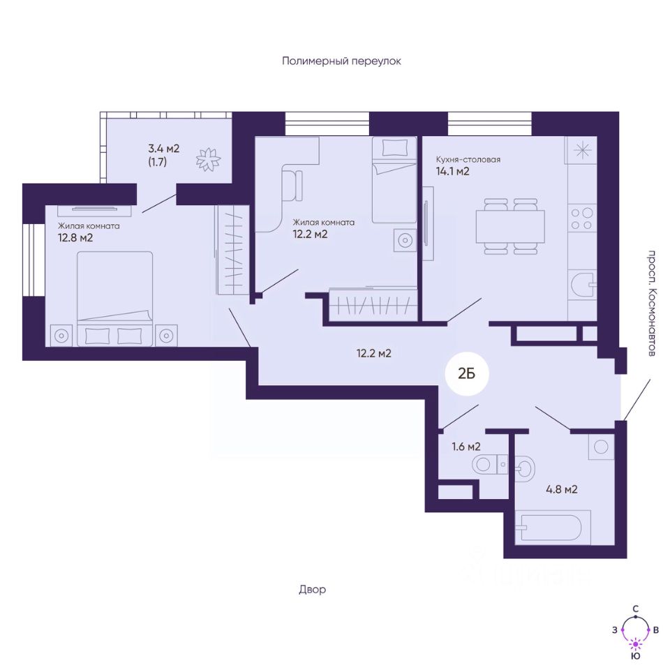 Продаётся 2-комнатная квартира в сданном доме (Андромеда (Дом 4)), срок сдачи: II-кв. 2025, общей площадью 59.4 кв.м., на 15 этаже. ЖК ''Космос'' - современный жилой квартал на проспекте Космонавтов 7, который строит ГК ''Ривьера Инвест Екатеринбург''. Жилой комплекс - это пять домов, благоустроенная территория комплекса и наземная парковка. Места общего пользования также выполнены в единой стилистике ''космической'' темы, используемой и в оформлении холлов, и дворов.