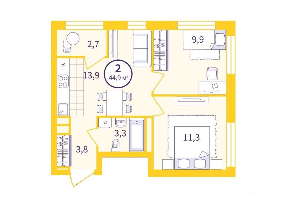 Квартира с подготовкой под чистовую отделку.