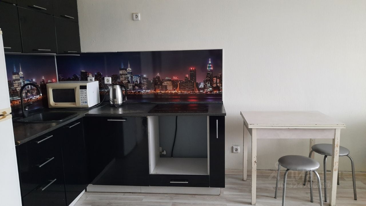 Квартира со светлыми стенами, натяжные потолки. Два балкона - застекленная часть с выходом на открытую. В прихожей встроенный функциональный шкаф, в комнате кухонный гарнитур (варочная панель, микроволновка, чайник, холодильник) стол, две табуретки и диван. Ванная комната оборудована необходимой сантехникой и стиральной машиной. В квартире проведен интернет оптический, Wi-Fi (Оплата ежемесячно 950 руб./31,63 руб. в сутки).