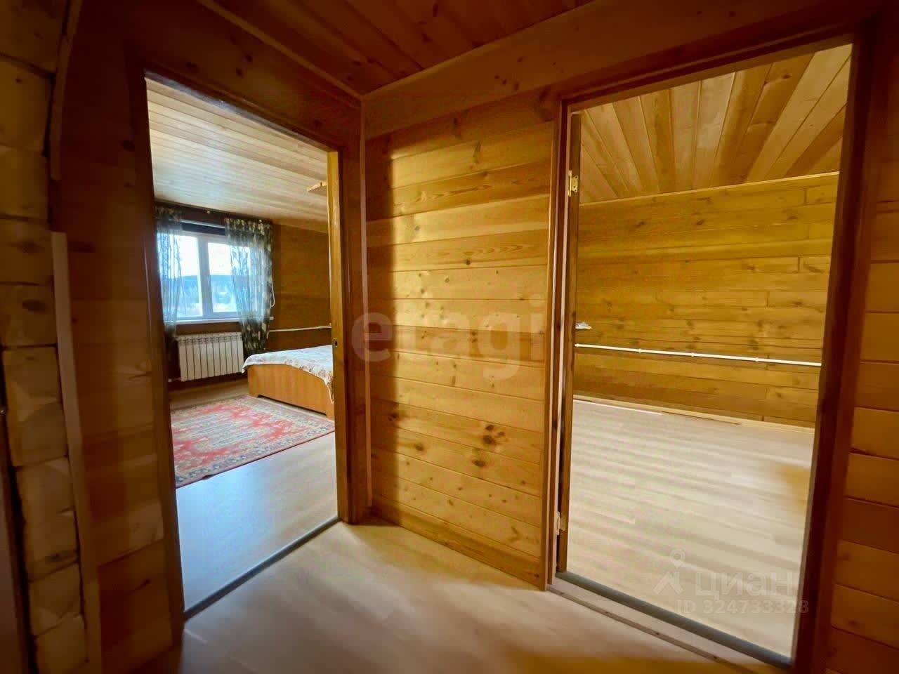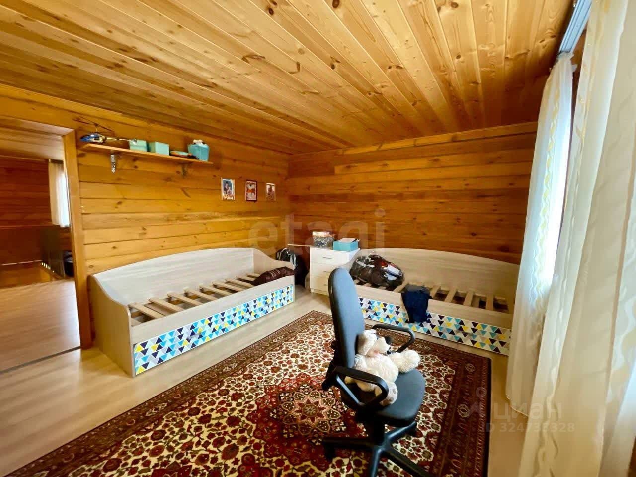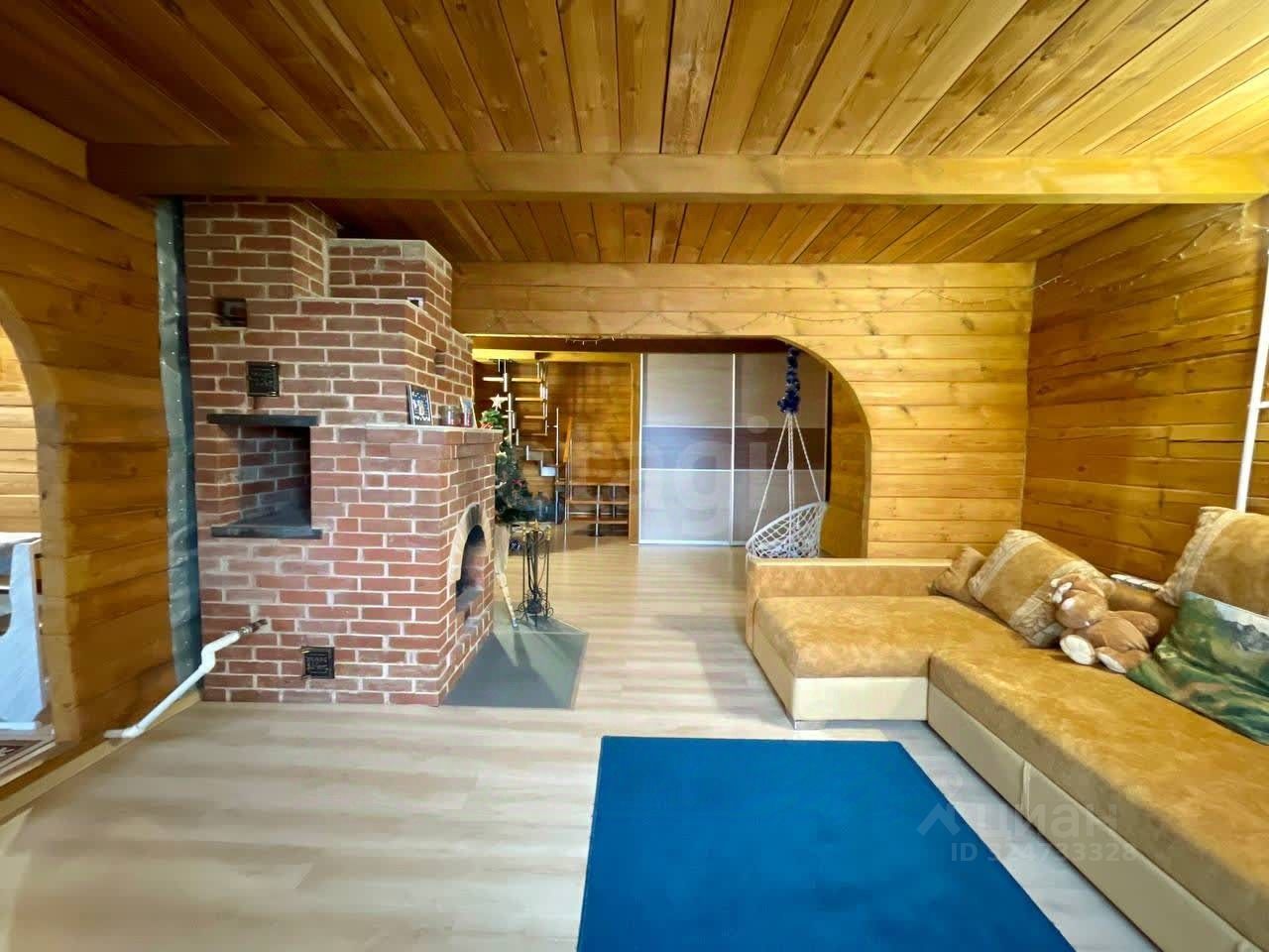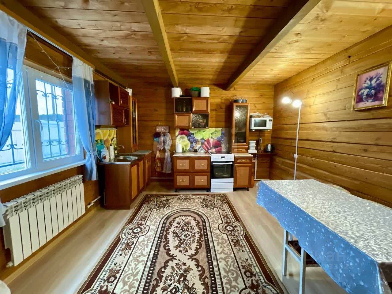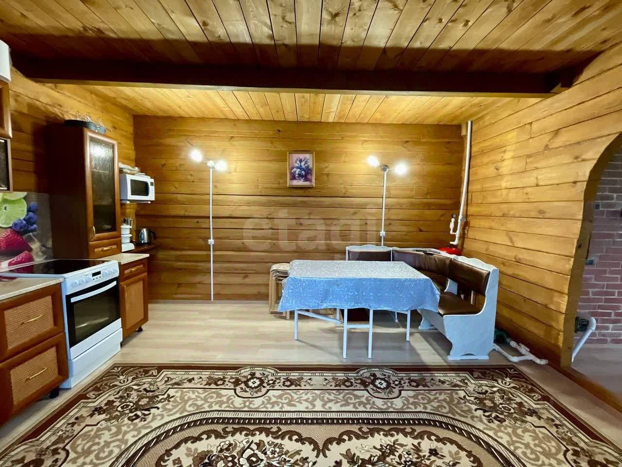 Продается современный дом из бруса 2019 года постройки площадью 159 м²., полноценных два этажа. Конструкция отличается энергоэффективностью: внешнее утепление 50 мм, вентиляционный зазор и облицовка кирпичом. На первом этаже расположены просторная кухня-гостиная, санузел с душевой кабиной, котельная и встроенный шкаф-купе. Второй этаж включает три изолированные комнаты, отдельный туалет и холл, который можно использовать как спортивную или игровую зону. Основной источник тепла — кирпичная печь-камин со встроенным котлом, распределяющим тепло по радиаторам по всему дому.