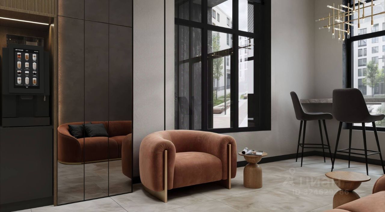 Входные группы спроектированы с учетом потребностей жителей прозрачные двери на уровне земли упрощают перемещение с колясками и велосипедами. В лобби работает кофепоинт, зоны ожидания и стеллаж для книгообмена.