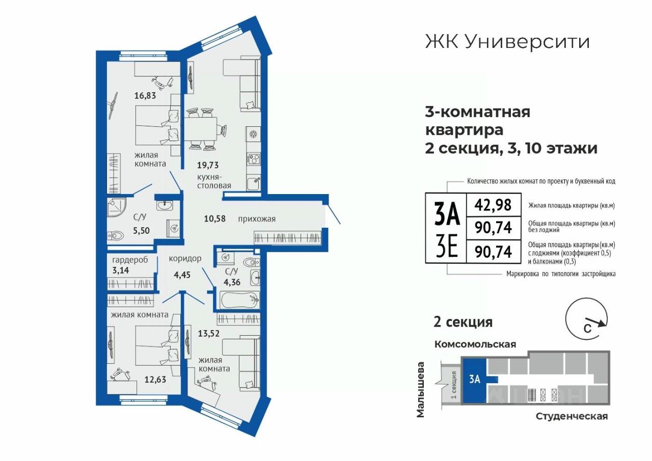 продам 3-к, Малышева, 137а14 309 698 ₽