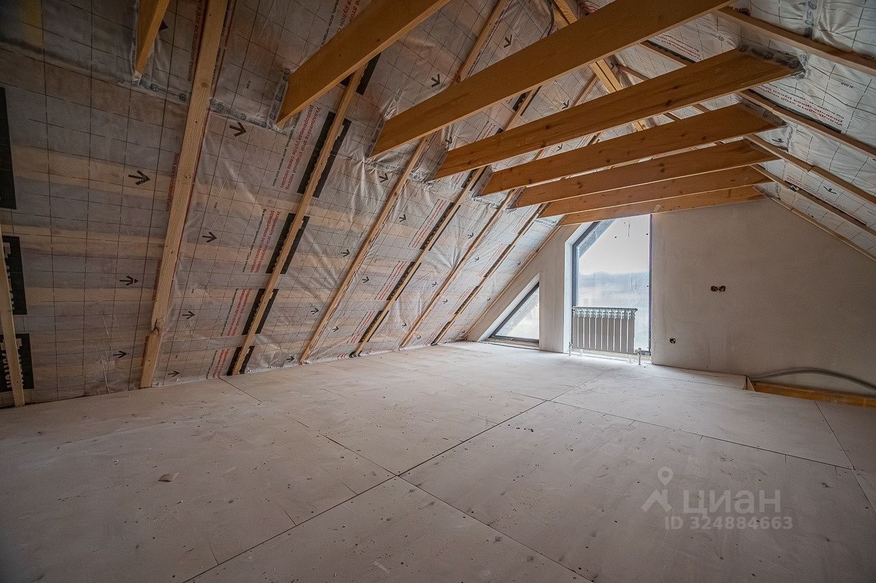 Работы по постройке дома выполнялись в 2023 году строительной организацией, имеющей все необходимые допуски и лицензии для строительства зданий. Общая площадь дома - 290 м2. Площадь отапливаемых помещений - 198.65 м2. Жилая зона - 104,65 м2 Зона кухни гостиной - 38,64 м2 Зона SPA - 55,32 м2. На мансардном этаже расположены еще 5 комнат общей площадью 42 м2.