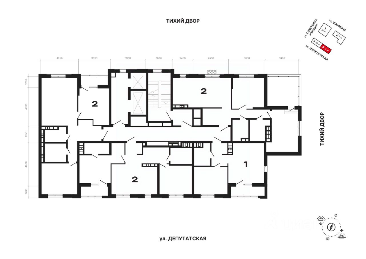 Дом монолитный, черырехподъездный, переменной этажности, от 9 до 31 этажей. Квартира находится в 4-й секции высотой 13 этажей в корпусе 2. На этаже 4 квартиры. В подъезде 1 пассажирский и 1 грузовой лифт. Окончание строительства - 4 квартал 2028 года. Оформление сделки по договору долевого участия.