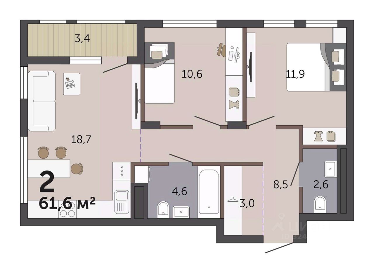 Общая площадь61,6 м2