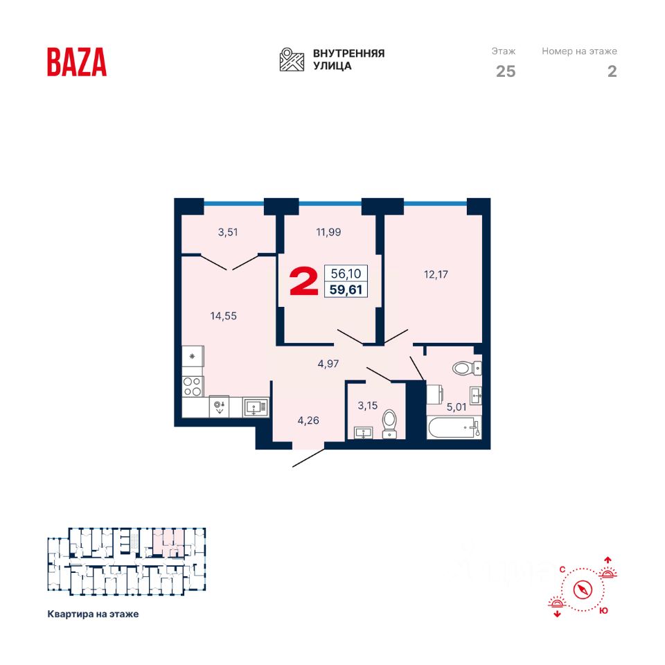 Общая площадь59,61 м2