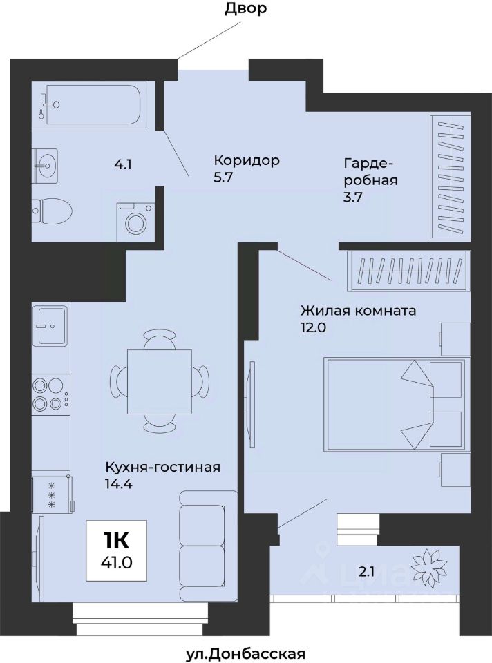 Общая площадь41,1 м2