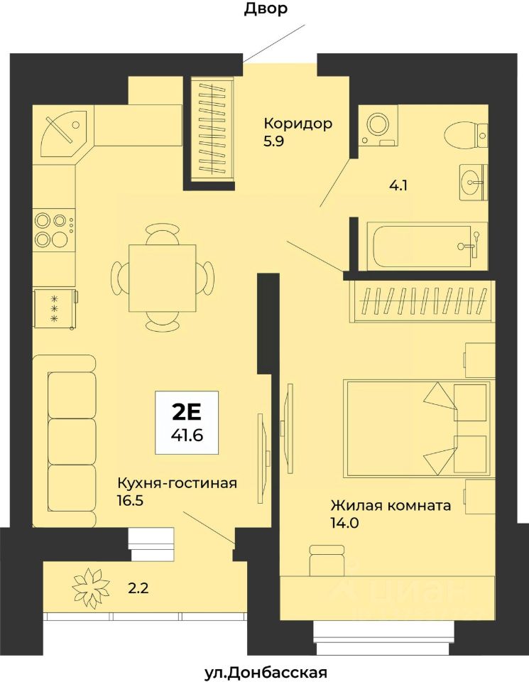 Общая площадь41,6 м2
