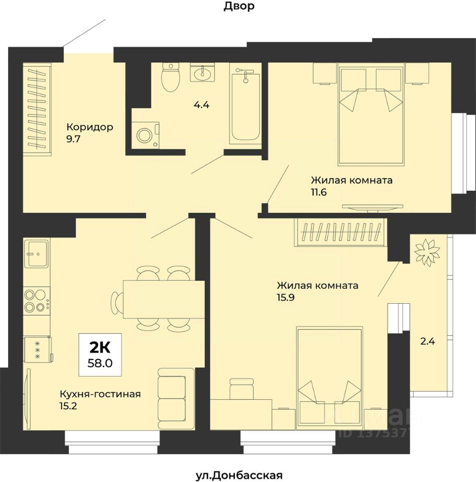 Общая площадь58 м2