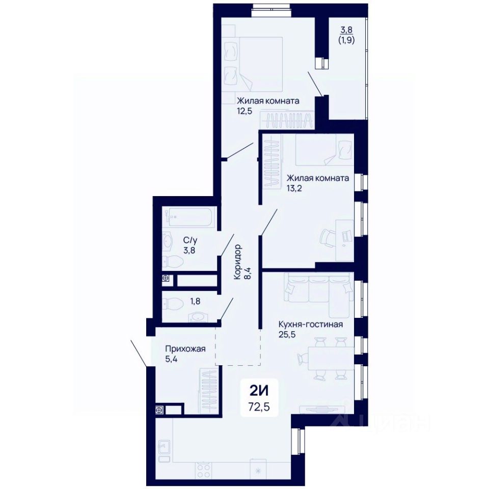Общая площадь72,5 м2