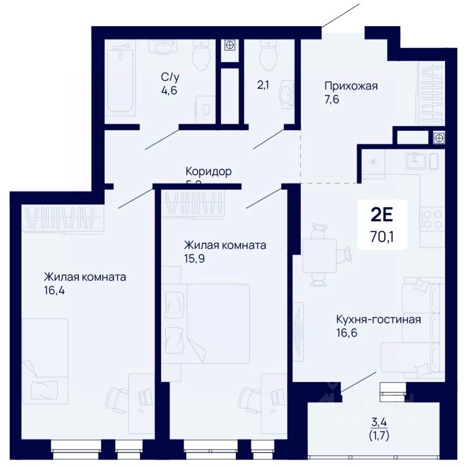 продам 2-к, Космонавтов проспект, гп 412 758 200 ₽