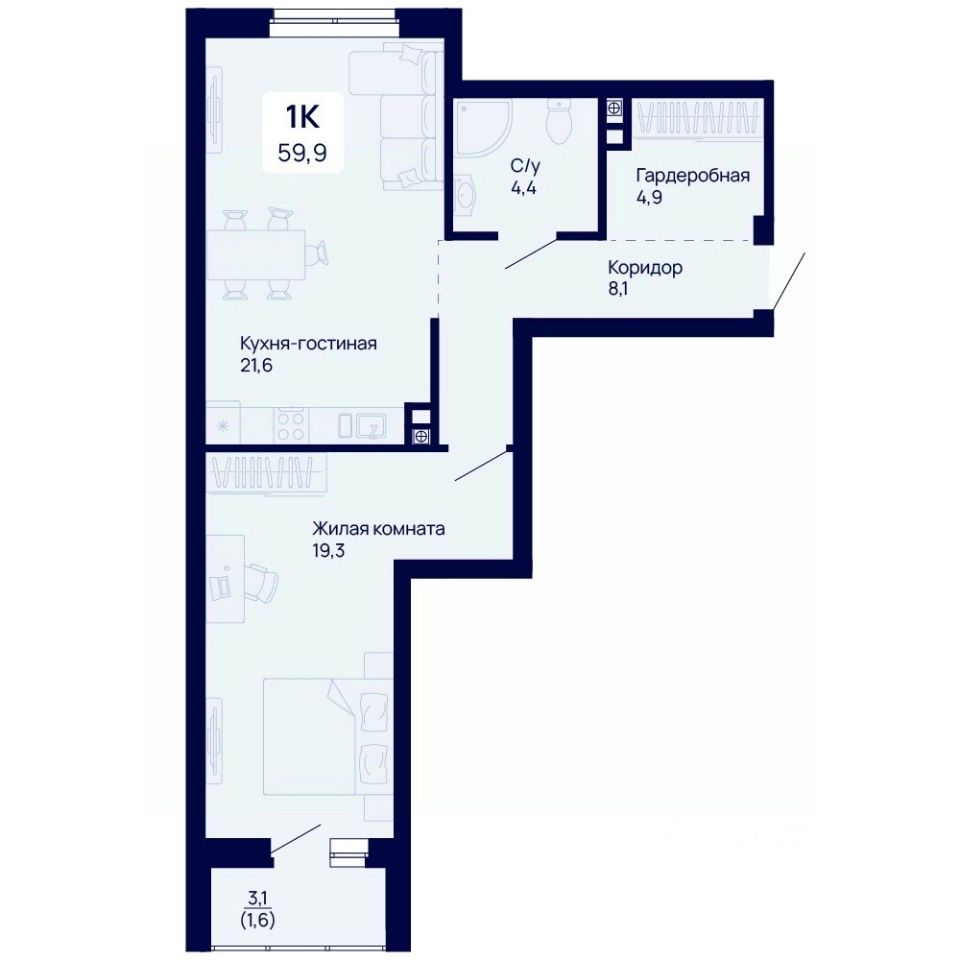 Общая площадь59,9 м2
