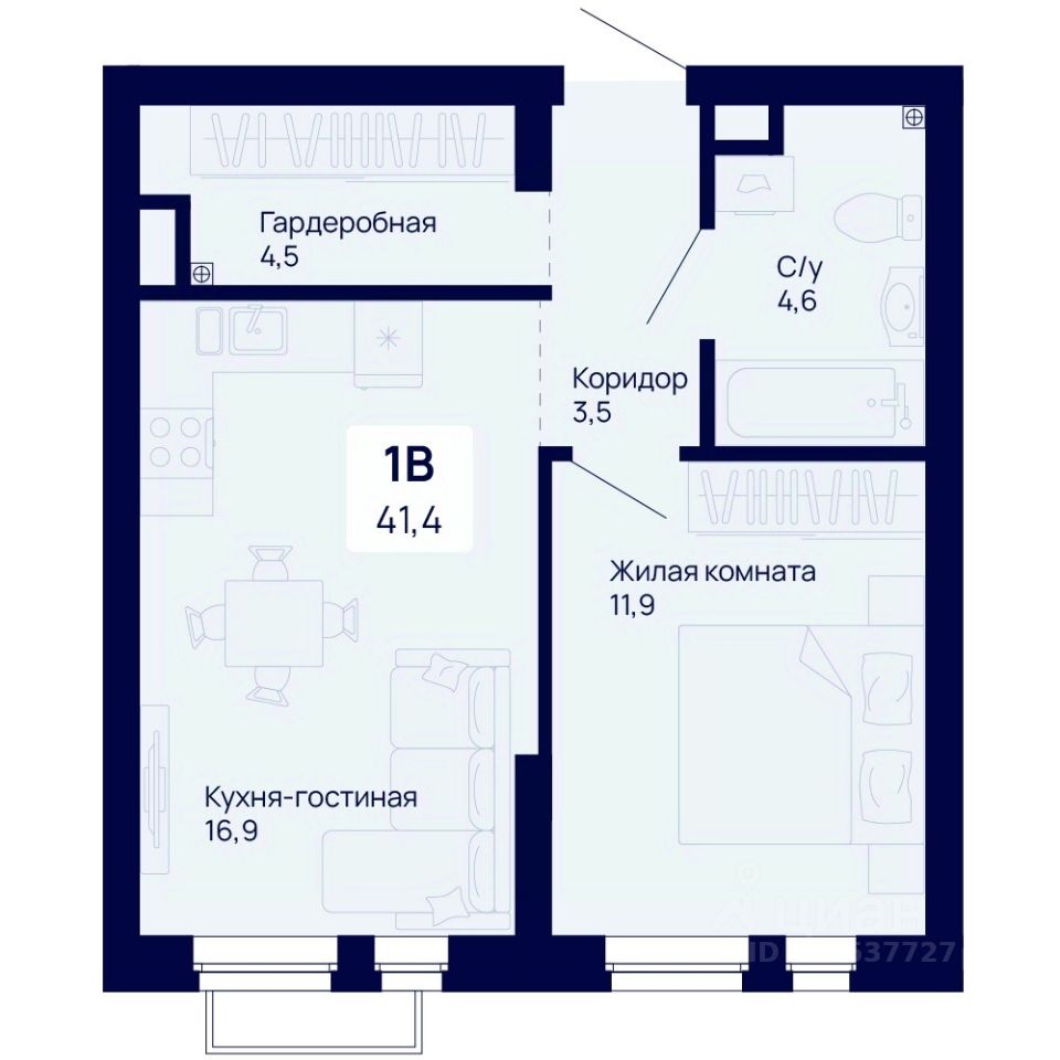 Общая площадь41,4 м2