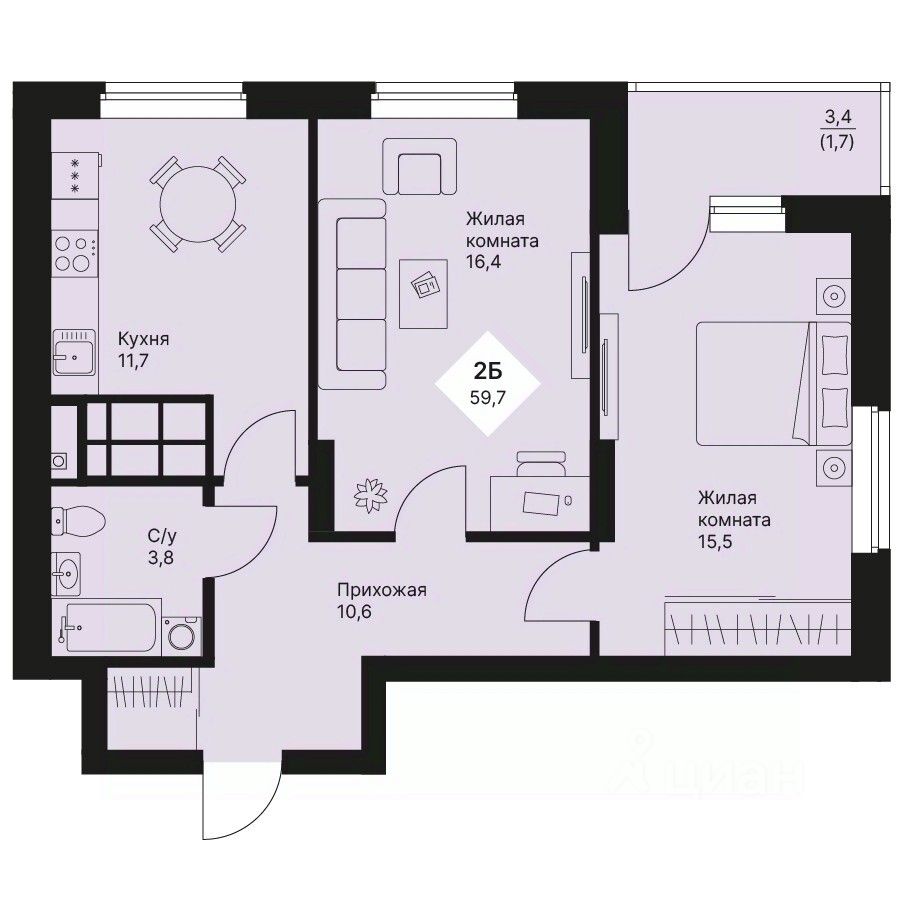 Общая площадь59,65 м2