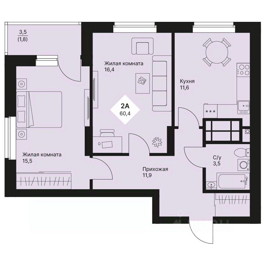 Общая площадь60,35 м2