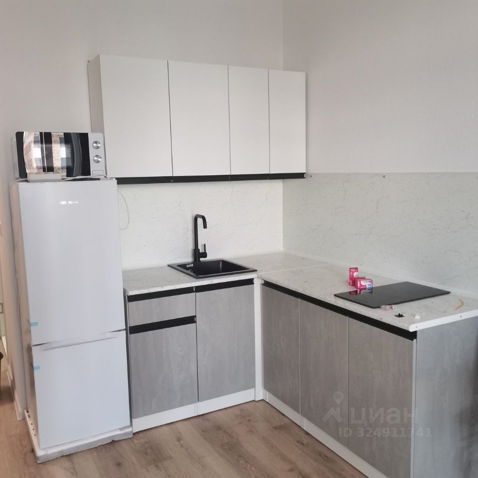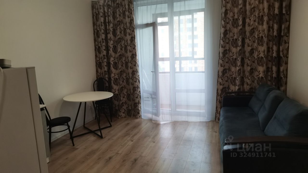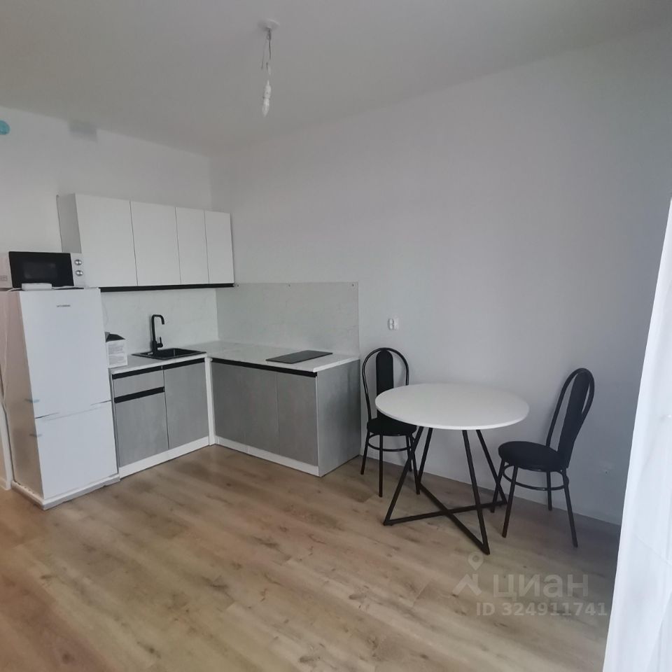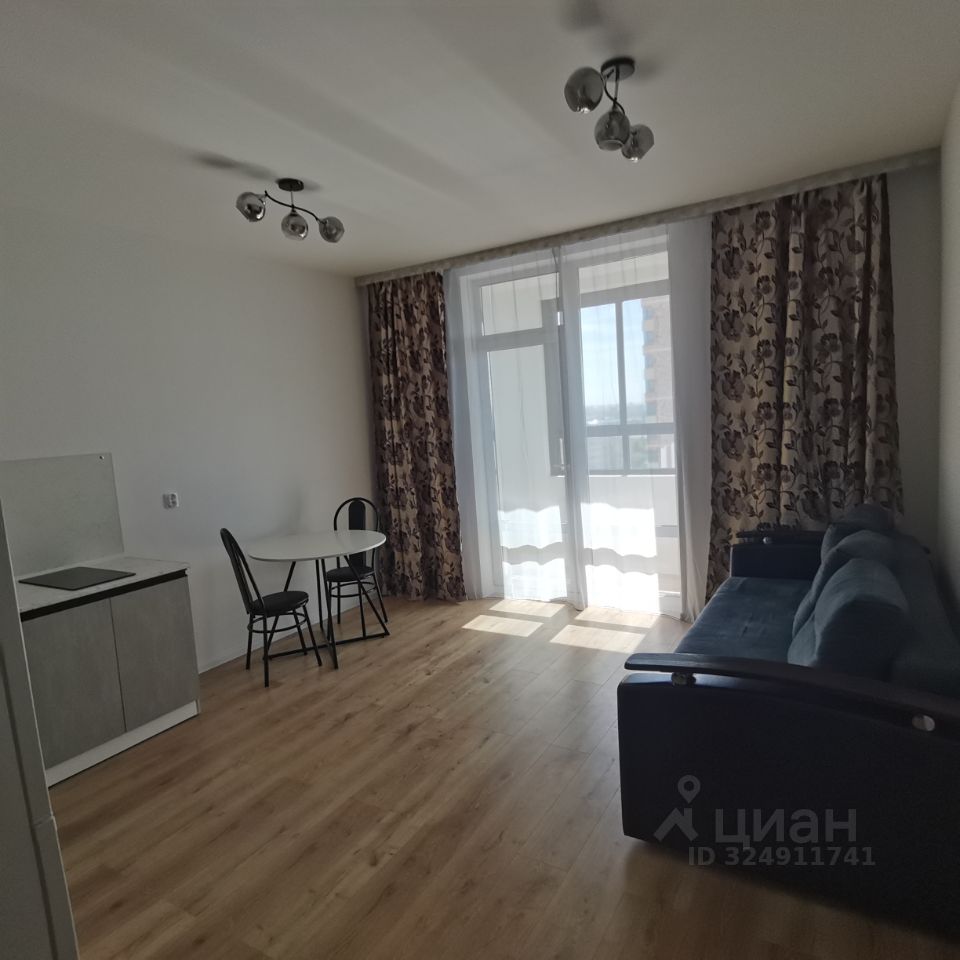 Сдаётся на длительный срок квартира в новом доме. Студия мебелирована, есть диван, холодильник, микроволновая печь, встроена варочная электрическая поверхность.