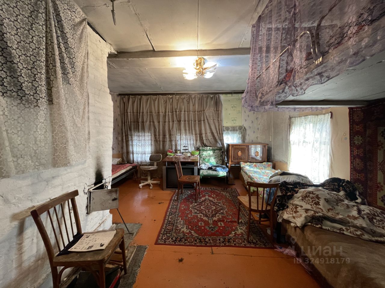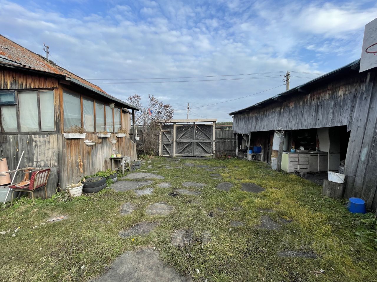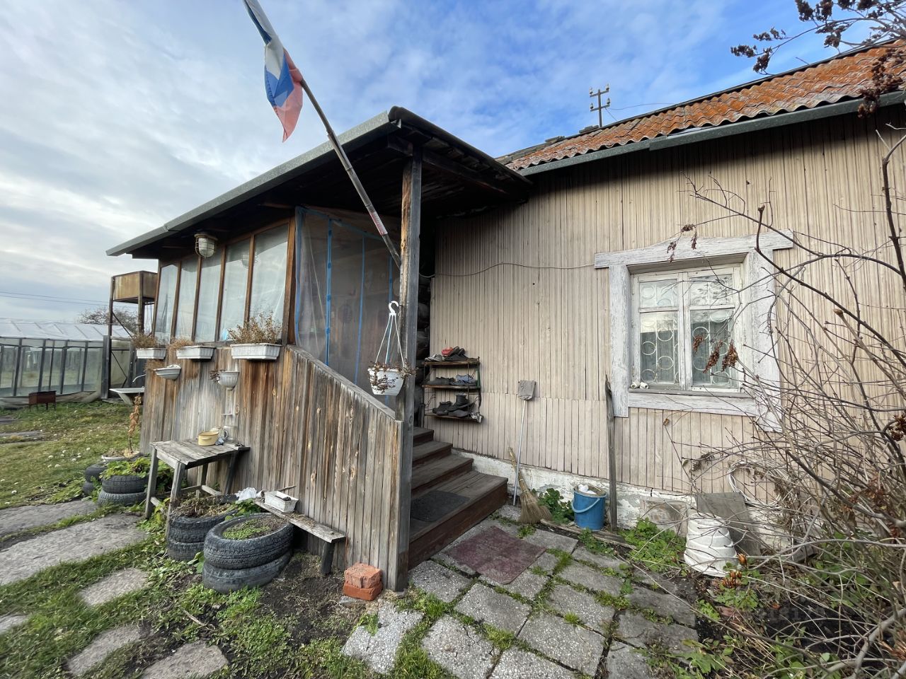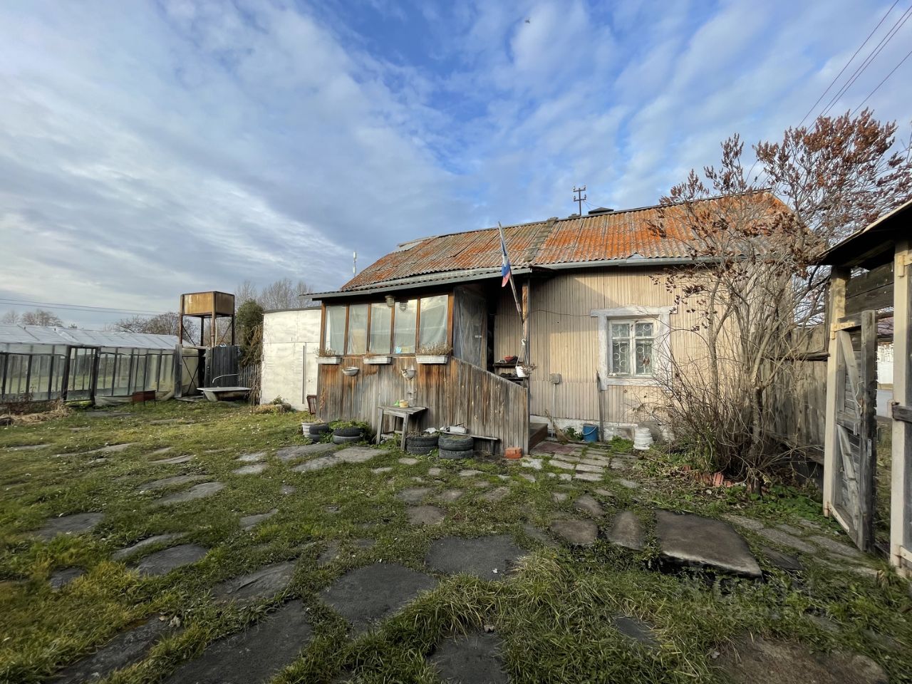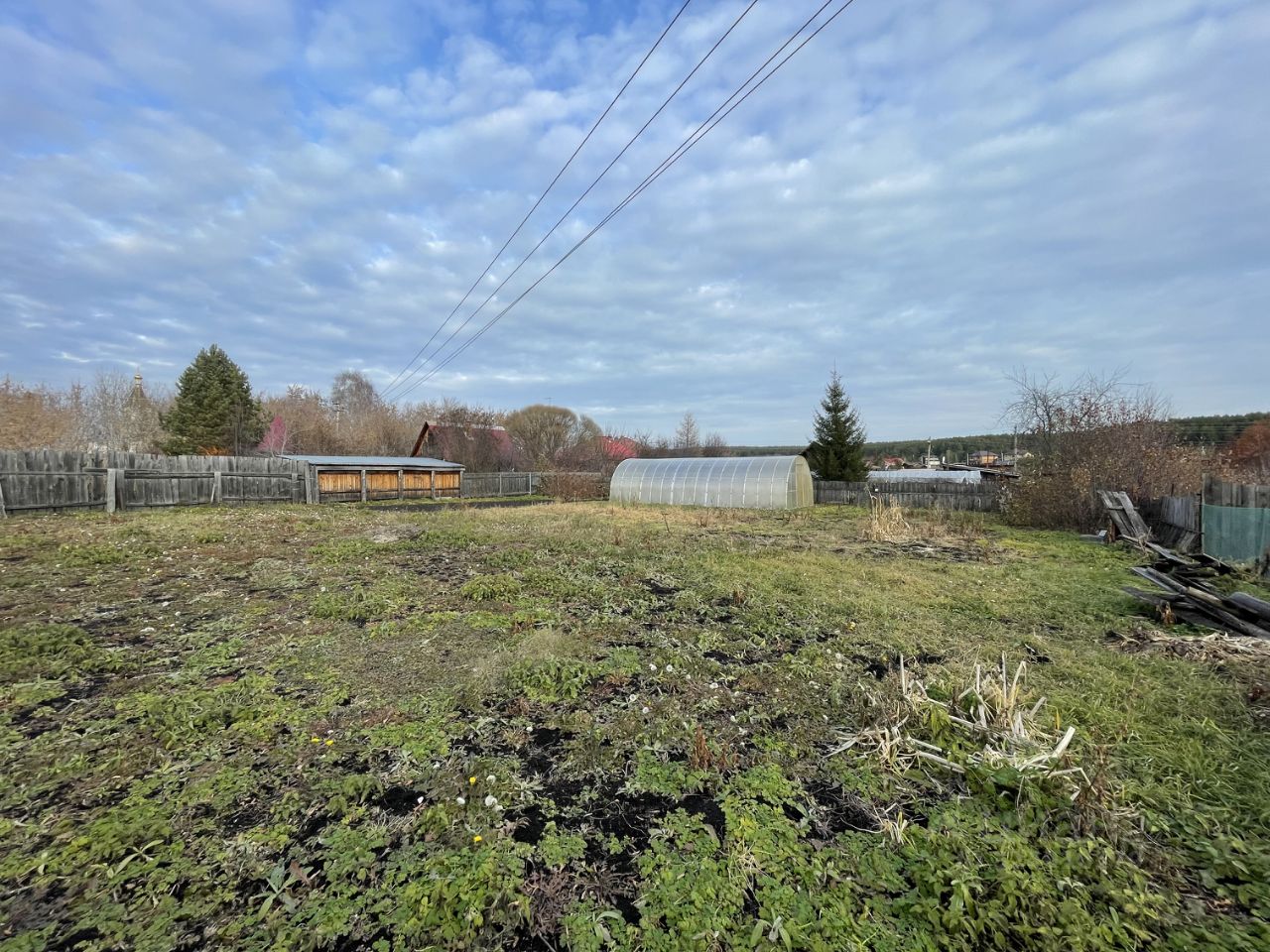 К Участку в подарок достаются хозяйственные постройки: функционирующая баня, две неплохие теплицы, навес, металлический гараж и жилой дом из бревна 1881 года постройки с русской печью!