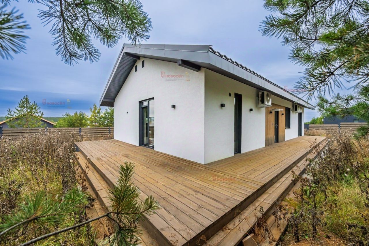 Объект N 195866. В связи с перездом предлагаю к продаже одноэтажный дом 189 м2 в закрытом клубном поселке Iset Village ( 5 мин от г. Арамиль). О месте: Поселок находится чуть поодаль от шумной дороги, на берегу реки Исеть. С одной стороны он окружен молодым сосновым лесом, а с другой - рекой. Есть свой песчаный чистый пляж с белым мелким песком, шезлонги, волейбольные сетки и др. инвентарь. Территория поселка огорожена и круглосуточно охраняется, есть видеонаблюдение. На территории поселка есть клуб добрососедства для отдыха и общения жителей. Там же можно принимать курьеров и гостей, если вы не хотите приглашать их в дом. Также регулярно проводятся тематические встречи книжного клуба, йога, дегустации вин и сыров, праздники и другие мероприятия. Есть футбольное поле, баскетбольная и волейбольные площадки, 2 детских игровых площадки. О доме: Дом с жилой площадью 120 кв.м + 69 кв.м. террасса вокруг дома. В доме 3 спальни и большая кухня - гостиная. Выход на террасу есть из мастер спальни и из кухни-гостиной. В каждой комнате есть кондиционер и индивидуальный регулятор температуры с шагом в пол градуса - сделайте себе комфортно. Есть 2 сан.узла. Один с тропическим душем, второй - в ванной (в мастер спальне). Мастер спальня имеет свой гардероб и сан.узел с ванной. Потолки везде от 3 метров, а в кухне -гостиной -5м в коньке, что дает необычайное ощущение простора и воздуха. Окна кухни-гостинной выходят на сосновый лес и зону огня. Особенностью этого дома является 2 комплекта откатных автоматических ворот. Это очень удобно для вас и ваших гостей. Ремонт дома находится в финишной стадии - осталось натянуть потолки, установить зеркала, розетки плинтус и двери. Все уже куплено согласно дизайн проекту. Все материалы качественные, строили для себя на долгие годы. На территории сохранен хвойный лес, который при желании покупателя можно будет убрать полностью или частично. Это изюминка этого участка. В доме все подготовленно для запуска газового оборудования. Газ в поселке проведен до границ участка. Котельная позволяет питать дом и газом, и электричеством.