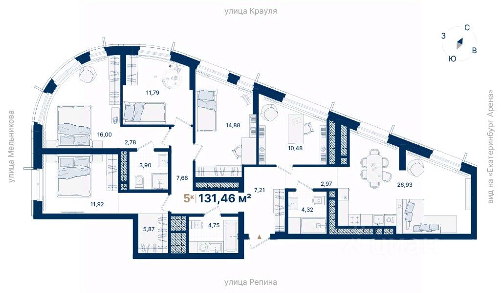 Дома расположены на стрелке улиц Репина и Крауля, рядом со стадионом ''Екатеринбург Арена''. Здесь уже есть все необходимое для жизни: сады, школы, поликлиники и магазины.