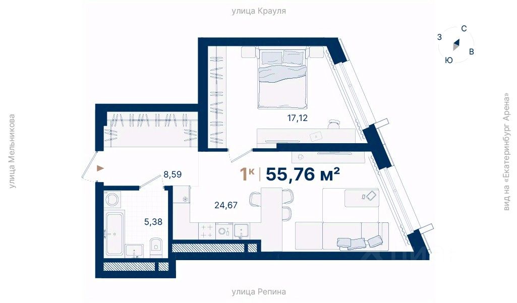 Дома расположены на стрелке улиц Репина и Крауля, рядом со стадионом ''Екатеринбург Арена''. Здесь уже есть все необходимое для жизни: сады, школы, поликлиники и магазины.