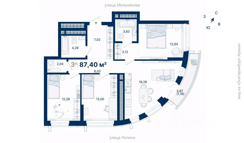 Дома расположены на стрелке улиц Репина и Крауля, рядом со стадионом ''Екатеринбург Арена''. Здесь уже есть все необходимое для жизни: сады, школы, поликлиники и магазины.