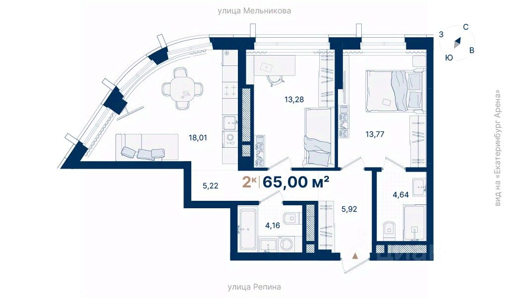 Дома расположены на стрелке улиц Репина и Крауля, рядом со стадионом ''Екатеринбург Арена''. Здесь уже есть все необходимое для жизни: сады, школы, поликлиники и магазины.