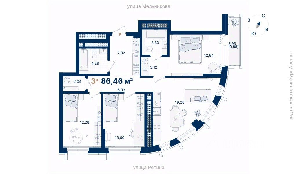 Дома расположены на стрелке улиц Репина и Крауля, рядом со стадионом ''Екатеринбург Арена''. Здесь уже есть все необходимое для жизни: сады, школы, поликлиники и магазины.