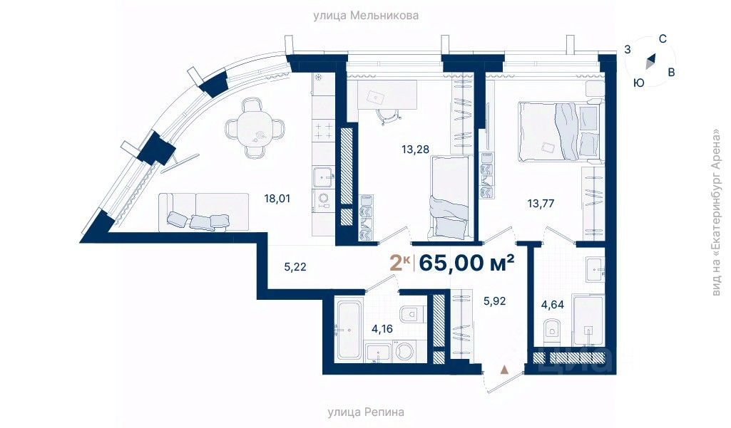 Дома расположены на стрелке улиц Репина и Крауля, рядом со стадионом ''Екатеринбург Арена''. Здесь уже есть все необходимое для жизни: сады, школы, поликлиники и магазины.