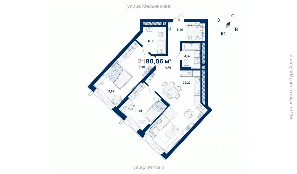 Дома расположены на стрелке улиц Репина и Крауля, рядом со стадионом ''Екатеринбург Арена''. Здесь уже есть все необходимое для жизни: сады, школы, поликлиники и магазины.