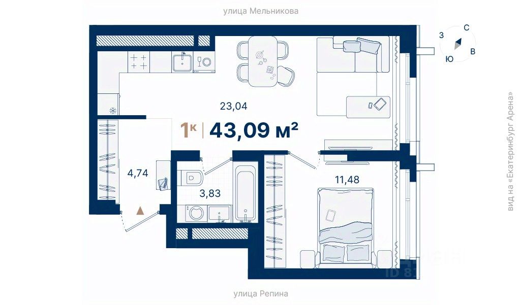 Дома расположены на стрелке улиц Репина и Крауля, рядом со стадионом ''Екатеринбург Арена''. Здесь уже есть все необходимое для жизни: сады, школы, поликлиники и магазины.