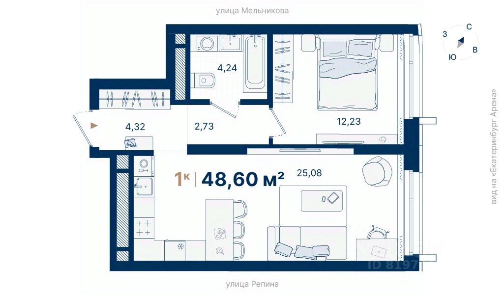 Дома расположены на стрелке улиц Репина и Крауля, рядом со стадионом ''Екатеринбург Арена''. Здесь уже есть все необходимое для жизни: сады, школы, поликлиники и магазины.