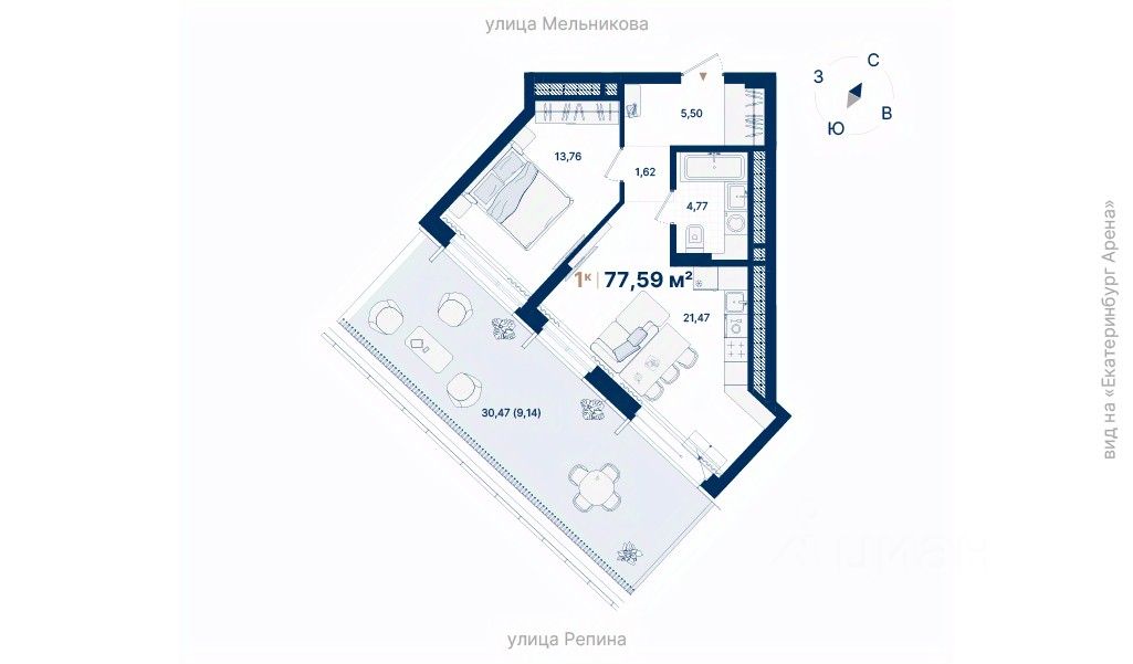 Дома расположены на стрелке улиц Репина и Крауля, рядом со стадионом ''Екатеринбург Арена''. Здесь уже есть все необходимое для жизни: сады, школы, поликлиники и магазины.