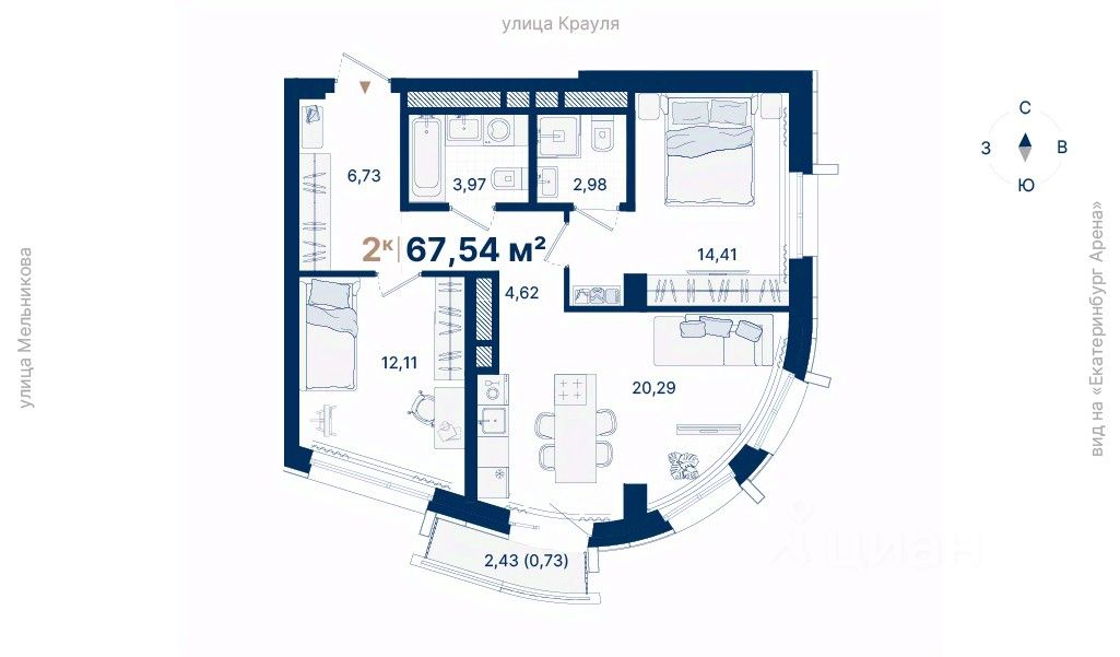 Дома расположены на стрелке улиц Репина и Крауля, рядом со стадионом ''Екатеринбург Арена''. Здесь уже есть все необходимое для жизни: сады, школы, поликлиники и магазины.