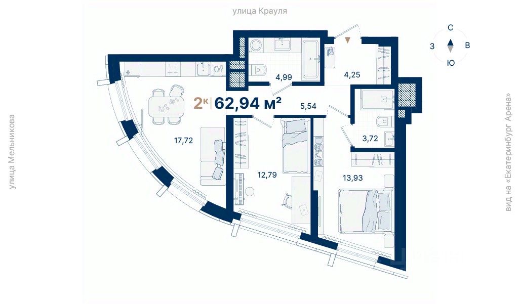 Дома расположены на стрелке улиц Репина и Крауля, рядом со стадионом ''Екатеринбург Арена''. Здесь уже есть все необходимое для жизни: сады, школы, поликлиники и магазины.