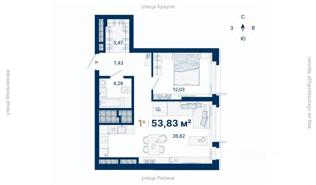 Дома расположены на стрелке улиц Репина и Крауля, рядом со стадионом ''Екатеринбург Арена''. Здесь уже есть все необходимое для жизни: сады, школы, поликлиники и магазины.