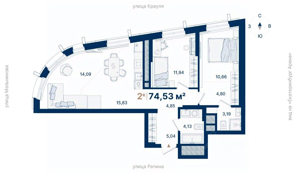 Дома расположены на стрелке улиц Репина и Крауля, рядом со стадионом ''Екатеринбург Арена''. Здесь уже есть все необходимое для жизни: сады, школы, поликлиники и магазины.