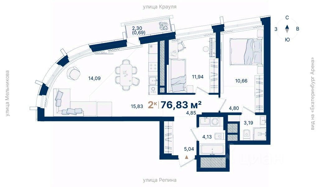 Дома расположены на стрелке улиц Репина и Крауля, рядом со стадионом ''Екатеринбург Арена''. Здесь уже есть все необходимое для жизни: сады, школы, поликлиники и магазины.
